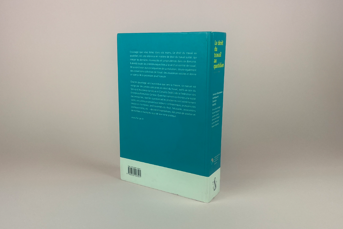 Graphisme et mise en page sur l’ouvrage « Le droit du travail au quotidien » (entre autre), pour la Fédération des Entreprises Romandes Genève.